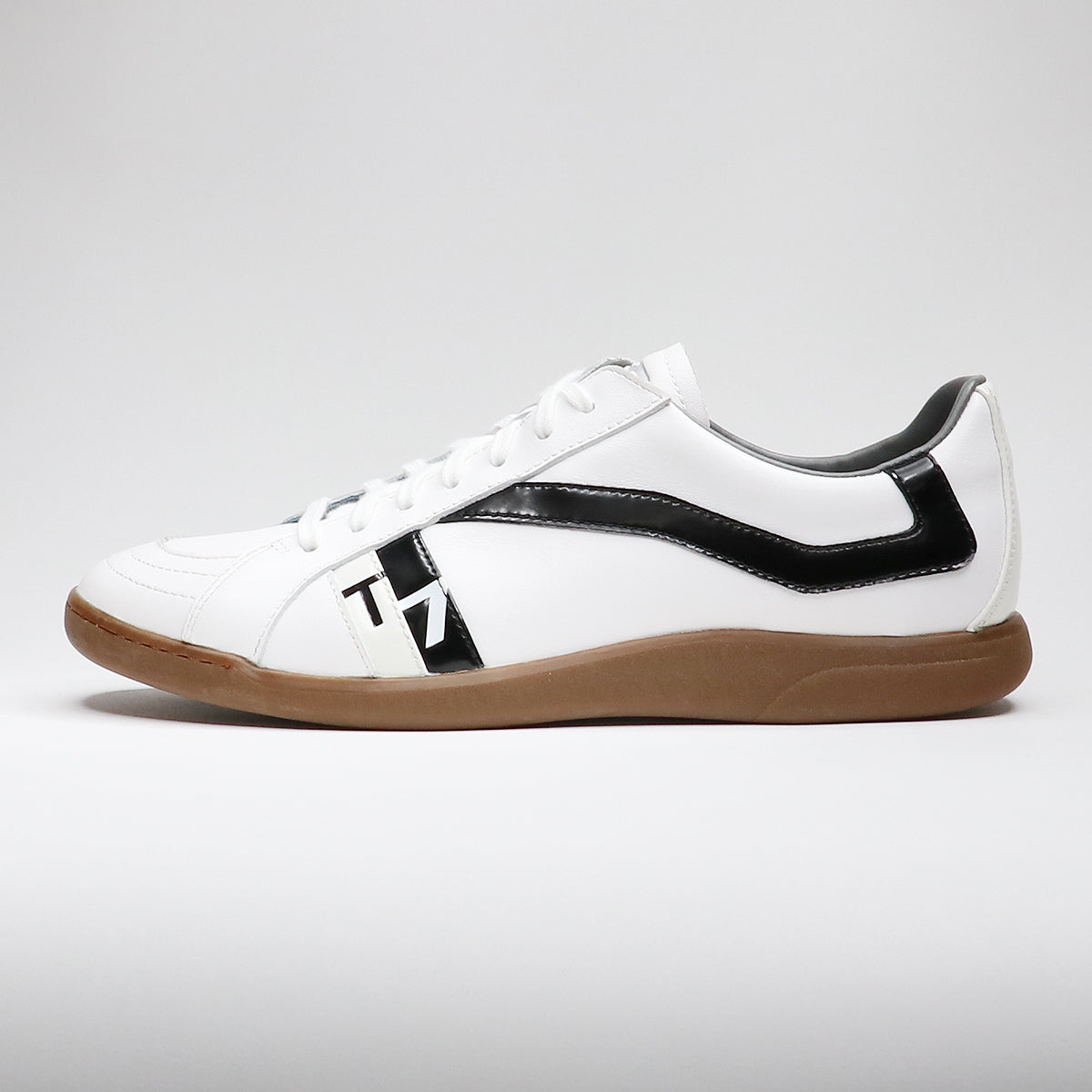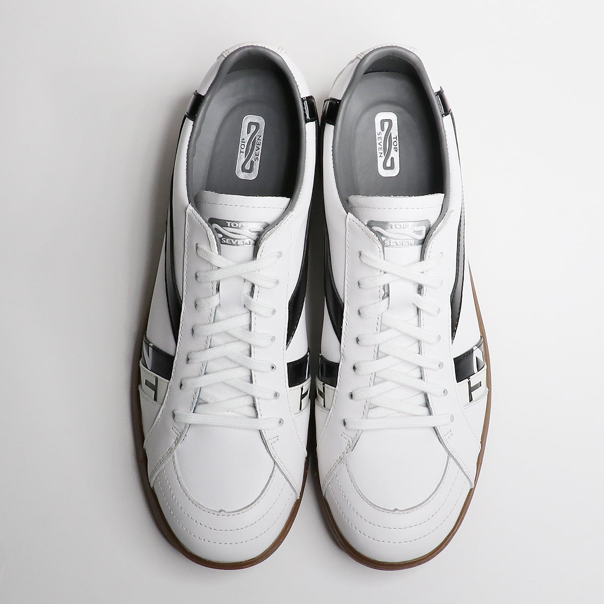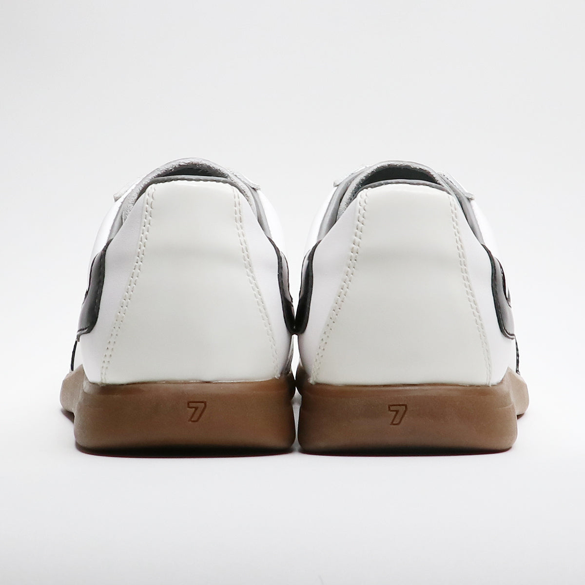 アッパーサイドやカカトにはエナメルレザーを使用し程よい光沢感が大人カジュアルを上品に魅せてくれるレザースニーカーになります。