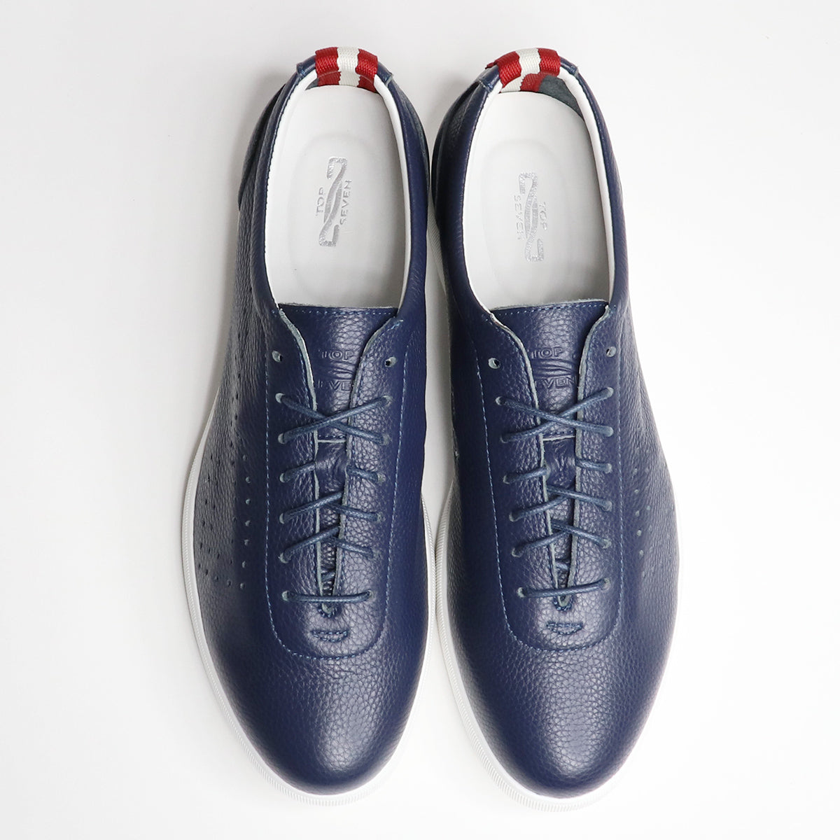 トップセブンの人気定番モデル【T7-At260-S】 は、“オーセンティックシリーズ”の代表的なモデル 。長年にわたって愛される理由は、そのミニマルな外観と汎用性。アッパーに上質なフルグレインレザーを1枚革で使用。ドレスシューズを思わせるスリムな木型から生まれたスマートなロングノーズが特徴で、大人スニーカーの教科書ともいえる王道のフォルムが人気の秘密です。