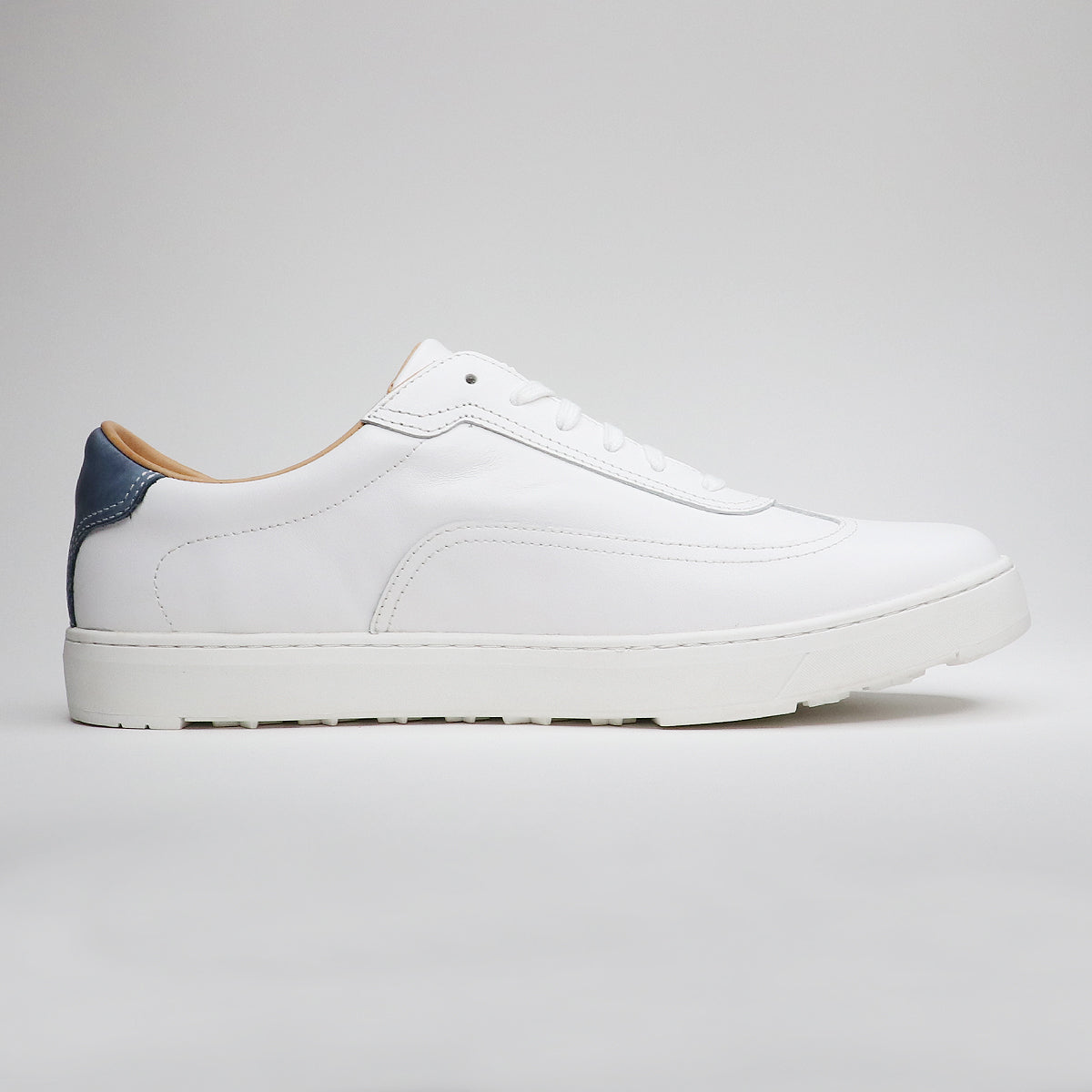 今回はシンプルな大人のレザースニーカーをベースにしたデザインとなりますので、キレイ目カジュアルなゴルフスタイルにも違和感なく組み合わせられるモデルです。